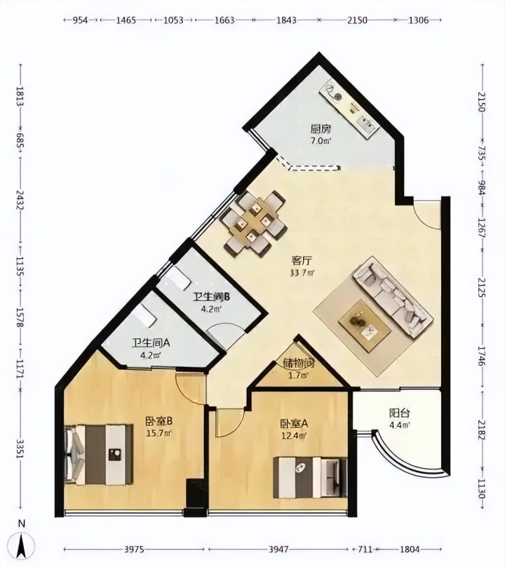 千万不要买那些奇形怪状的户型,边角多,装修头疼,住着别扭。