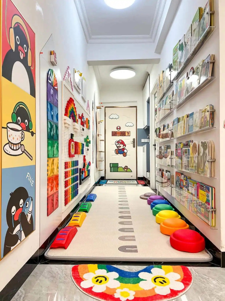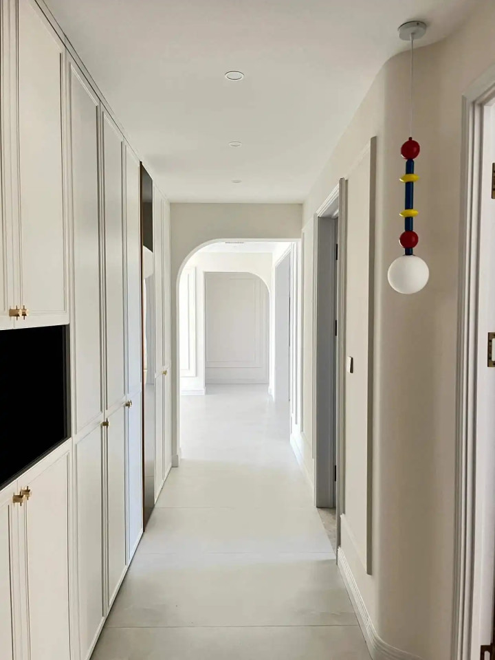 实在躲不开这个走廊的,也要看看它能不能再利用上,比如是否可以再加个收纳柜,或者墙面可以做孩子的涂鸦墙、家庭照片墙。