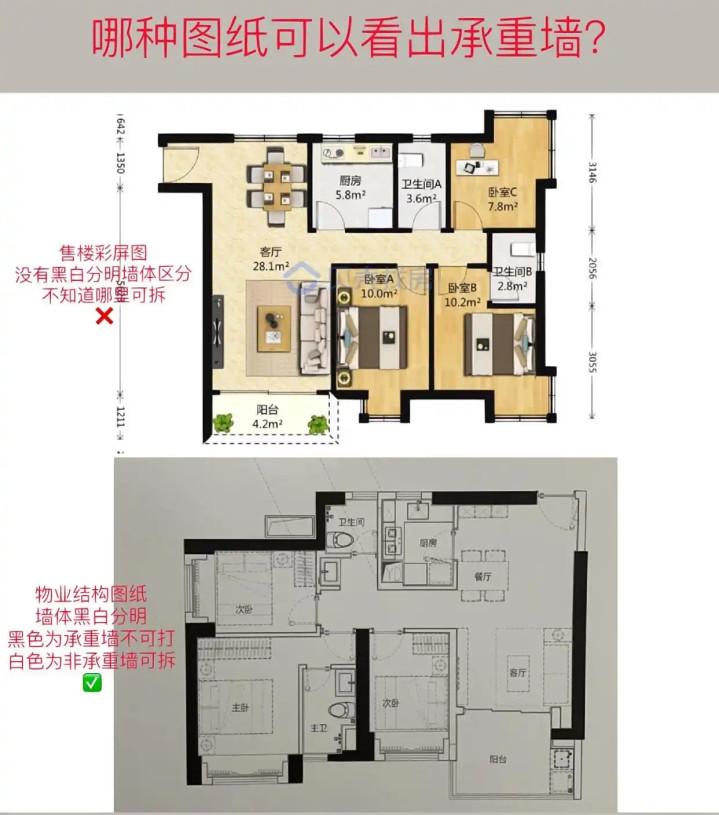 买毛坯房,很多人心里都会盘算着去改造:打通这面墙做开放式厨房,那面墙开个窗采光……但有一条前提是:承重墙让你改吗?