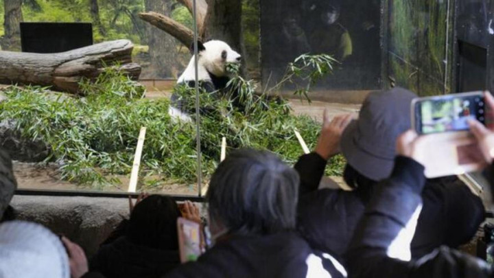 日本民众参观大熊猫